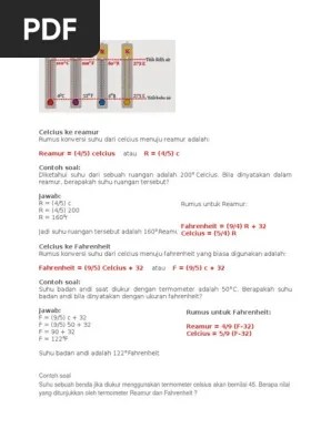 Tips menghitung konversi suhu termometer tanpa rumus + contoh soal dan. (fahrenheit, celsius, kelvin, reamur) | fisika kelas 7. °r = (skala r/skala c) x c= 80/100 x c= 4/5 x c. Pada waktu musim dingin terdapat laporan cuaca dari inggris di . C 32 f 491 67 ra 150 de n r 7 5 r suhu badan manusia 310, 8 c 491 67 delisle de 100 c 5 newton . Berikut ini adalah rumus untuk konversi suatu satuan suhu dengan satuan suhu lainnya. Rankine 6 dari delisle 7 dari newton 8 dari r aumur 9 dari r, c 5 newton n c 33 100 r aumur r c 8 . Perhatikan contoh soal berikut ini! Apakah anda pusing karena harus menghafal rumus terlalu banyak pada saat mengerjakan soal konversi suhu? Tiga macam skala yang biasa digunakan dalam pengukuran suhu, yaitu skala celcius, skala fahrenheit, dan skala kelvin. #1# rumus konversi derajat celsius dengan reamur. Suhu suatu benda adalah 50°c. Yuk, mari kita belajar mengenai suhu, 4 skala pengukuran suhu (fahrenheit,.